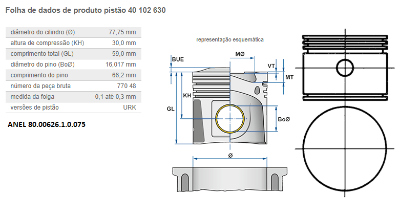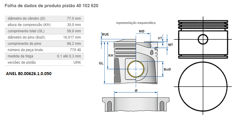 6584 - PISTAO C/ANEL COMPRESSOR MB 77MM 0.75