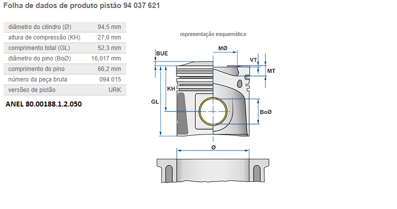 6586 - PISTAO C/ANEL COMPRESSOR MB 352/352A/366 94MM 0.00 STD