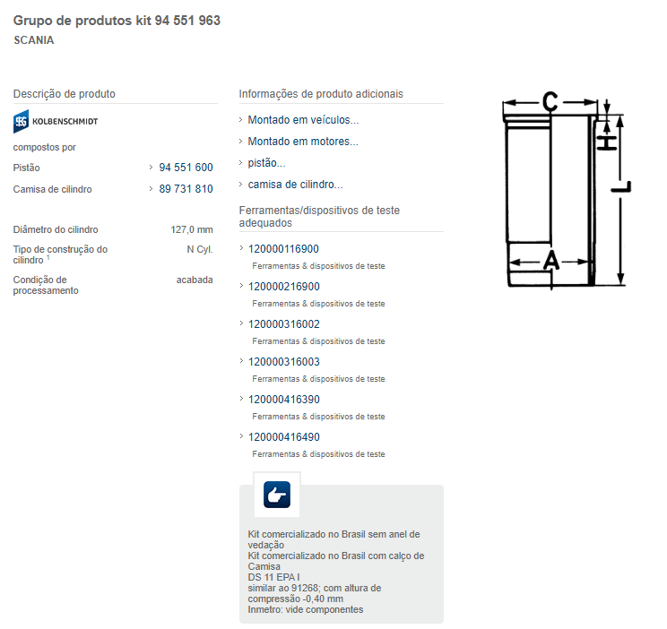 6599 - CAMISA MOTOR SCANIA 111/112 VENDER CI-27345
