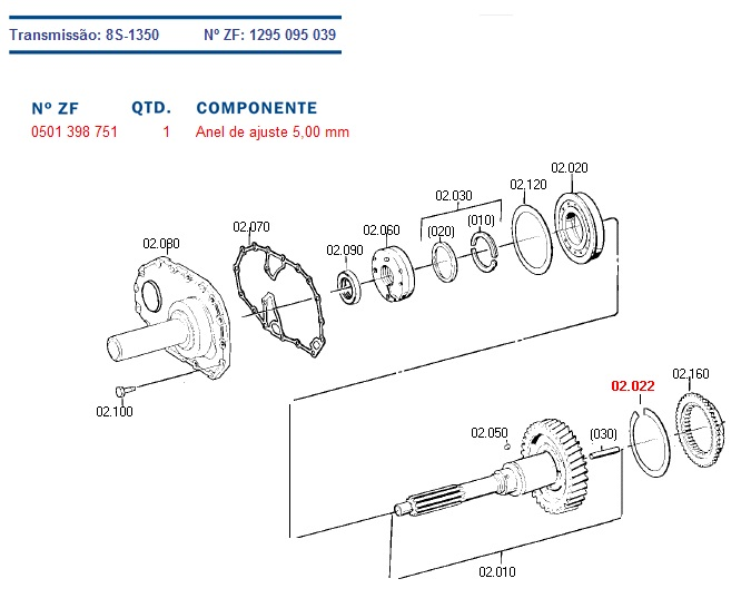 6612 - ANEL DISTANCIADOR EIXO PILOTO CAMBIO MB/VOLVO 16S-165 5.00MM
