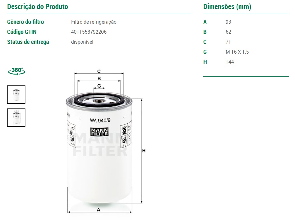 6628 - FILTRO REFRIG RAD VOLVO NH/FH // COM ROSCA 16MM