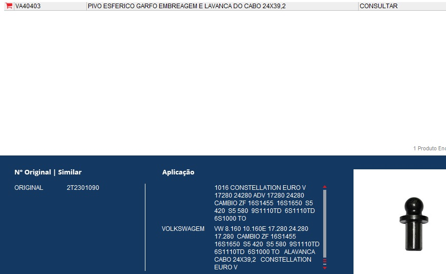 6949 - PINO ESFERICO GARFO EMBREAGEM VW 8160/17280