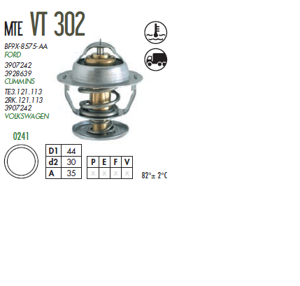 7032 - VALVULA TERMOSTATICA FORD CARGO/VW CUMMINS C 6-CIL ELETRONICO 82-GRAUS