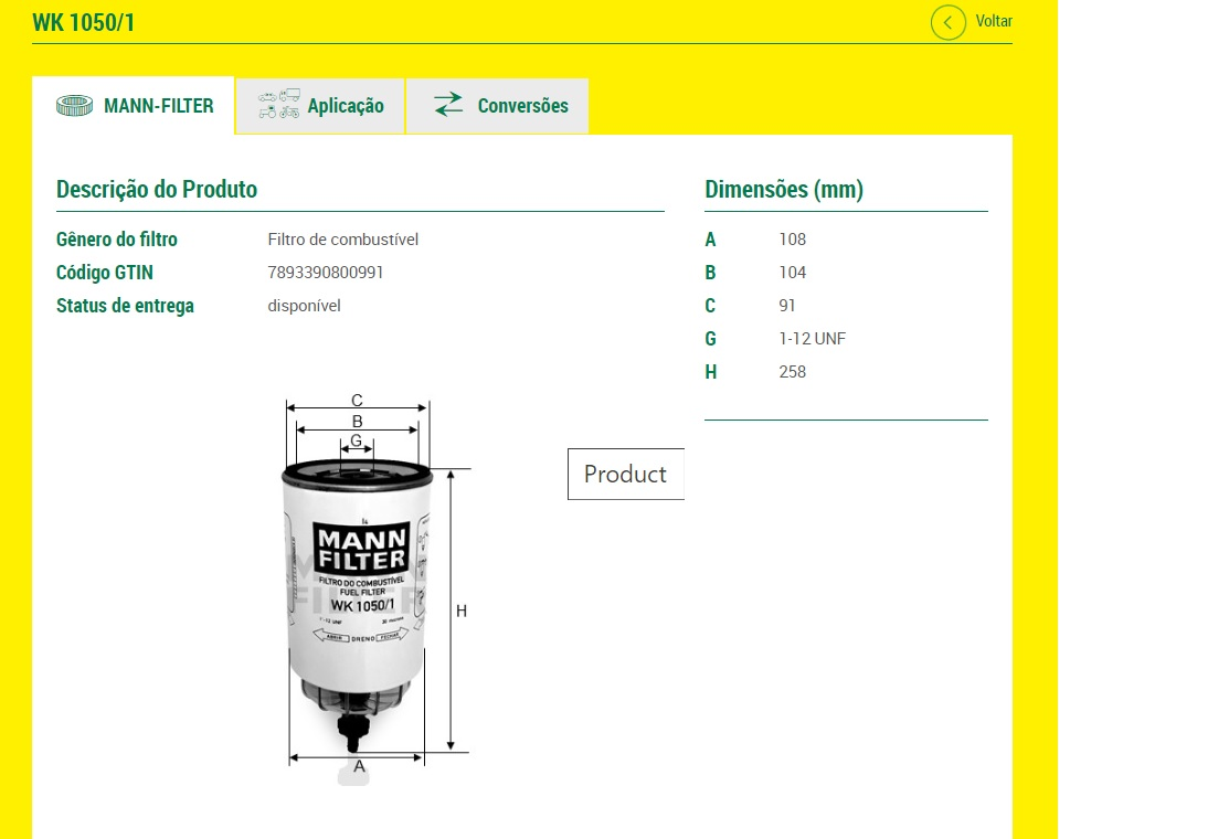 7420 - FILTRO RACOR MB 1938/2638 .../04 CURTO 1X12UNF2B 30-MICRA C/ COPO ACOPLADO