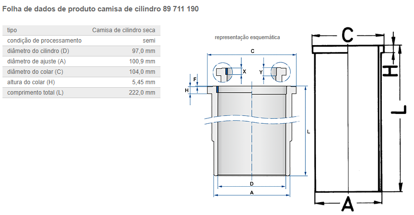 7424 - CAMISA MOTOR MB 314/352/364/366 1.00=0.40 C/FLANGE