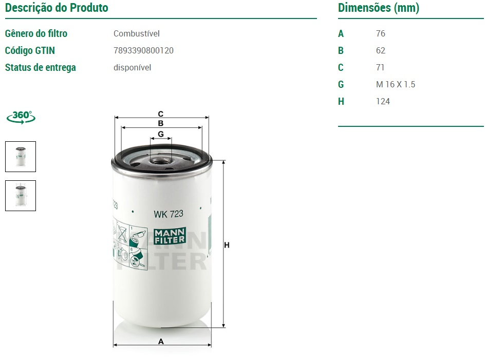 7670 - FILTRO DIESEL FORD CARGO/SCANIA/VOLVO LONGO
