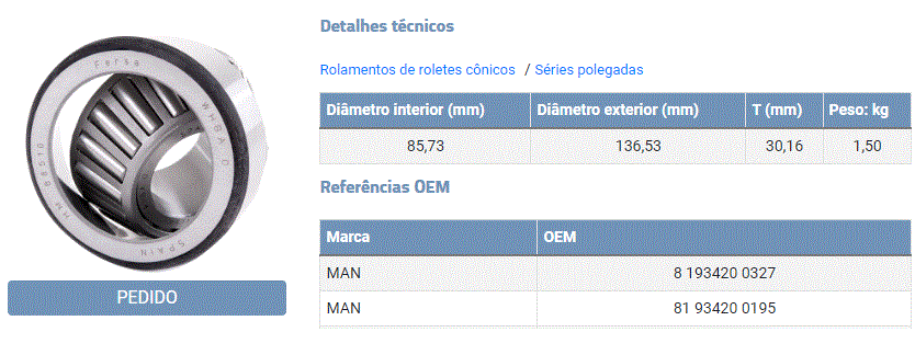 8234 - ROLAMENTO PINHAO TRAS MB 1519/REDUZIDO 1313/1618/1518