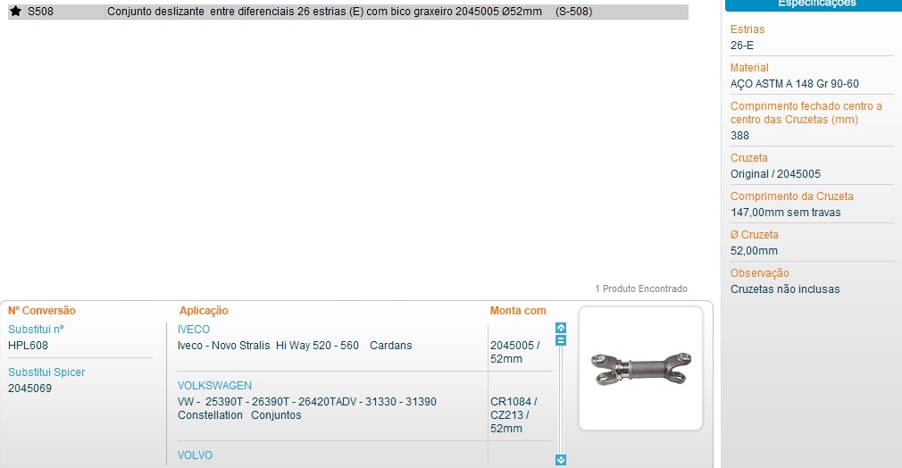 8390 - CJ PONTUVA CARDAN COMPLETO ENTRE DIF. VOLVO/IVECO/VW/DAF 610MM 26-ESTRIAS COMPLETA ACO
