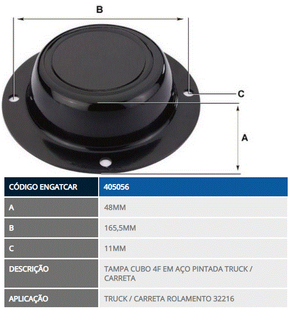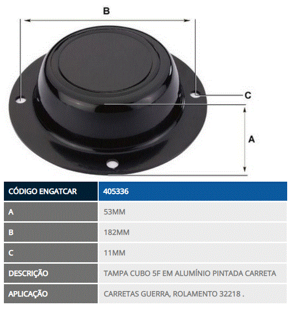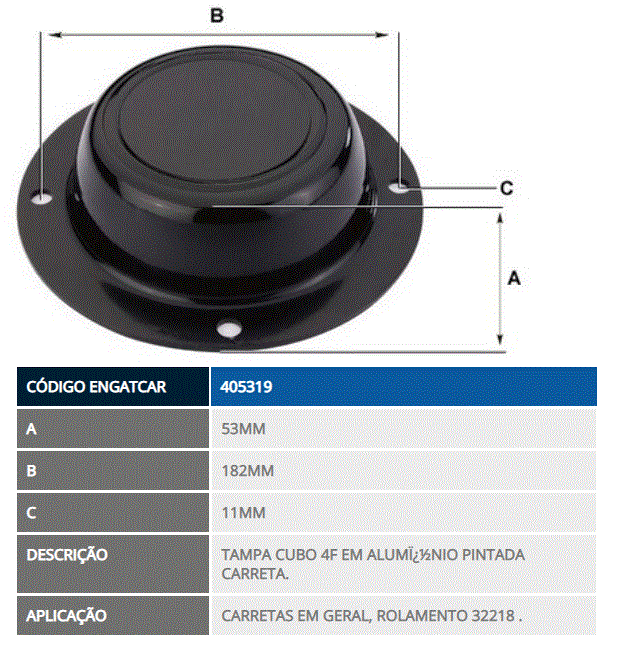 8440 - TAMPA CUBO 4-FURO CARRETA LOGO SUSPENSYS 53X184X11MM
