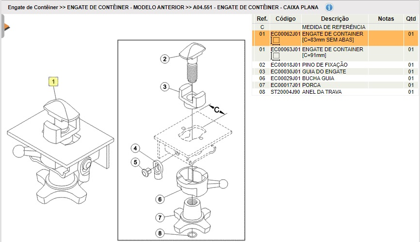 8682 - ENGATE CONTEINER CAIXA PLANA C=91 MM S/ ABAS
