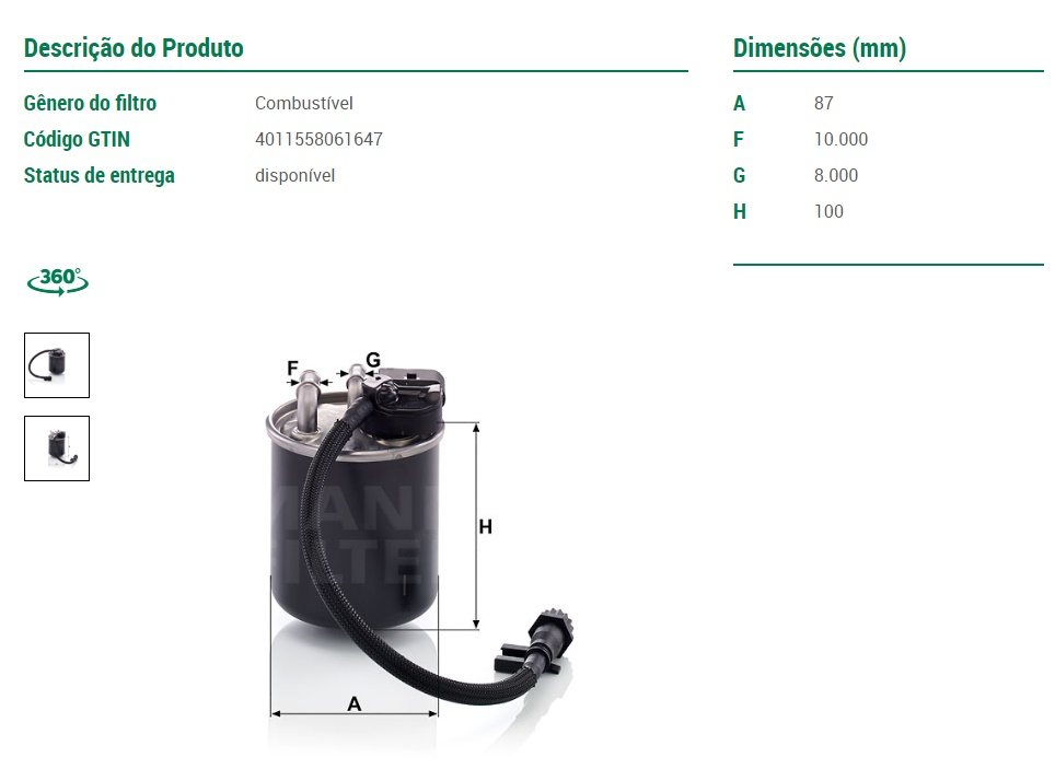 8709 - FILTRO DIESEL MB OM-651LA SPRINTER 311 CDI/415 CDI/515 CDI C/SENSOR 12/...