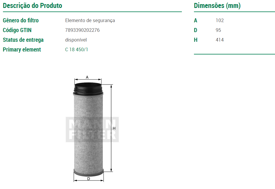 8847 - FILTRO AR SEGURANCA MB 912/ GM/PERKINS D10 D20 D40