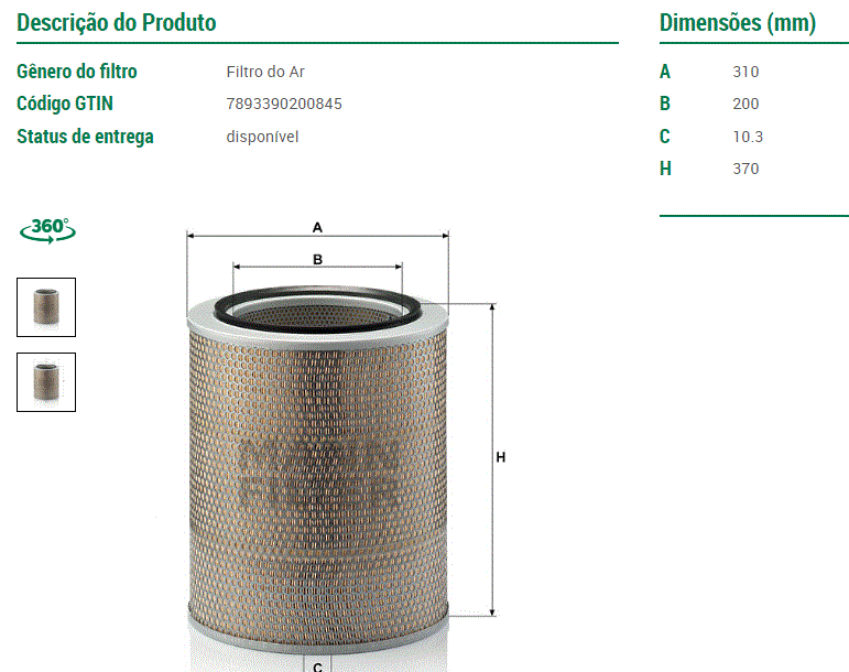 8836 - FILTRO AR MB OM 352/366