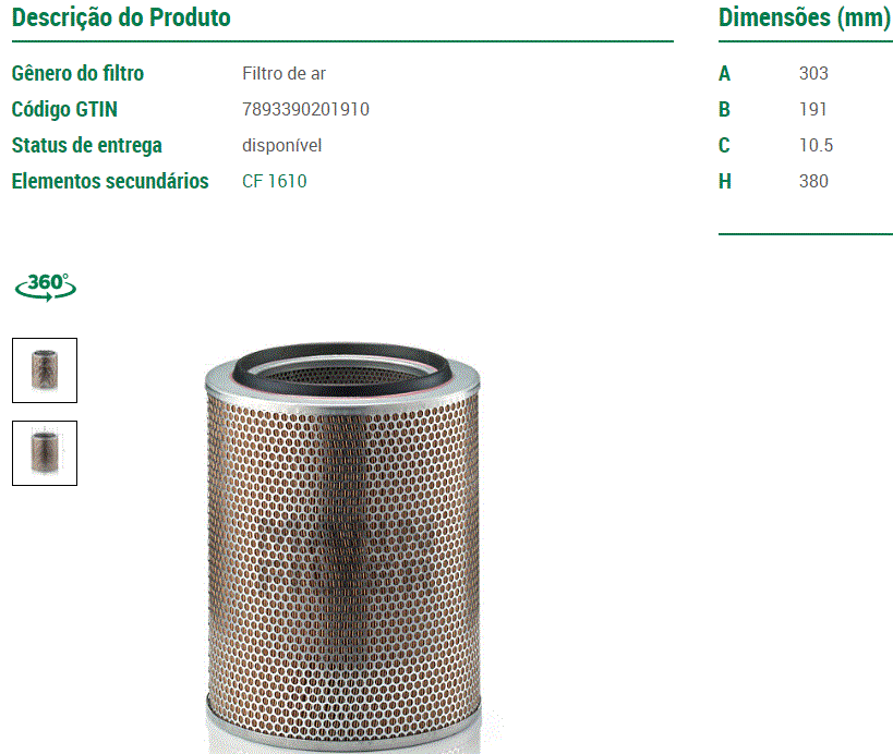 8825 - FILTRO AR FORD CARGO C/MOTOR FORD