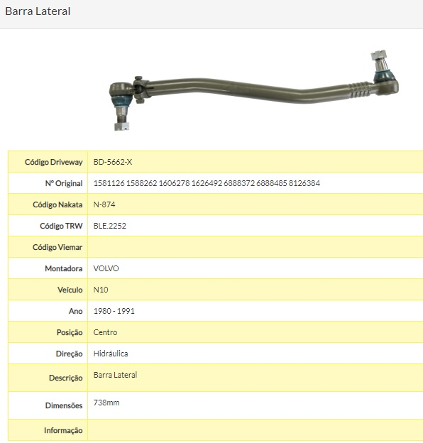 9063 - BARRA DIRECAO VOLVO CURTA N/NL/10/12 738MM