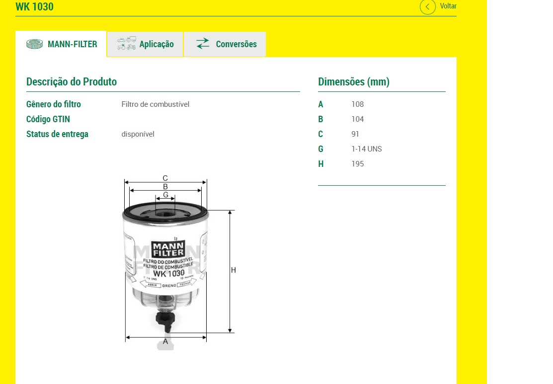 9429 - FILTRO SEPARADOR D/AGUA VW 7.100/8.100/12.170/14.150 C/ COPO ACOPLADO