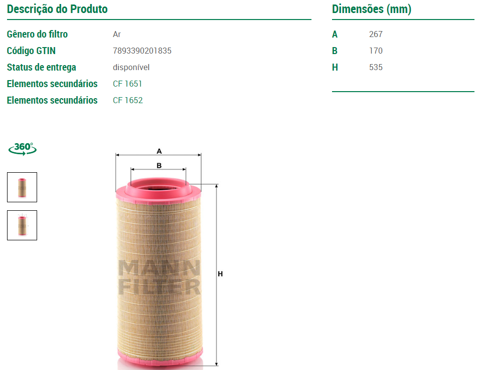 9445 - FILTRO DIESEL MB 1938/2638/2540 1-SERIE GRANDE