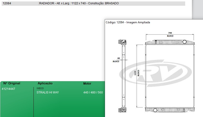 9821 - RADIADOR AGUA IVECO STRALIS HI WAY 440/480/560CV 2013/2020
