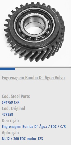 10108 - ENGRENAGEM BOMBA D/AGUA VOLVO EDC C/ROLAMENTO