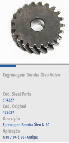 10118 - ENGRENAGEM BOMBA OLEO VOLVO N10 84/88 ANTIGA MENOR