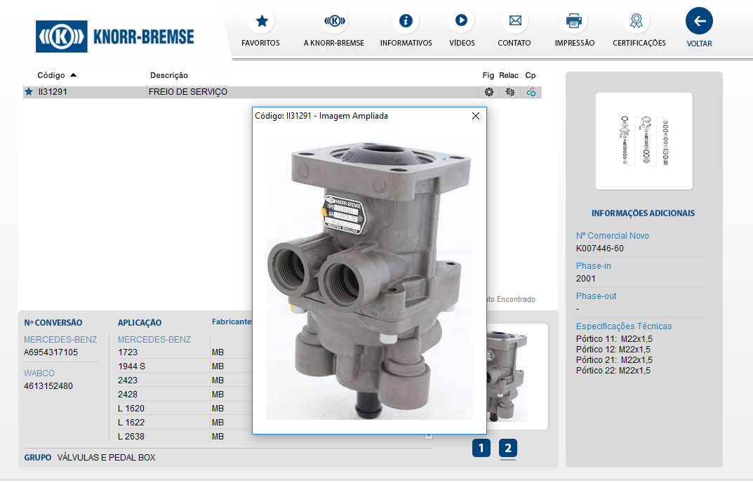 11002 - VALVULA RELE FORD CARGO/VW KNORR