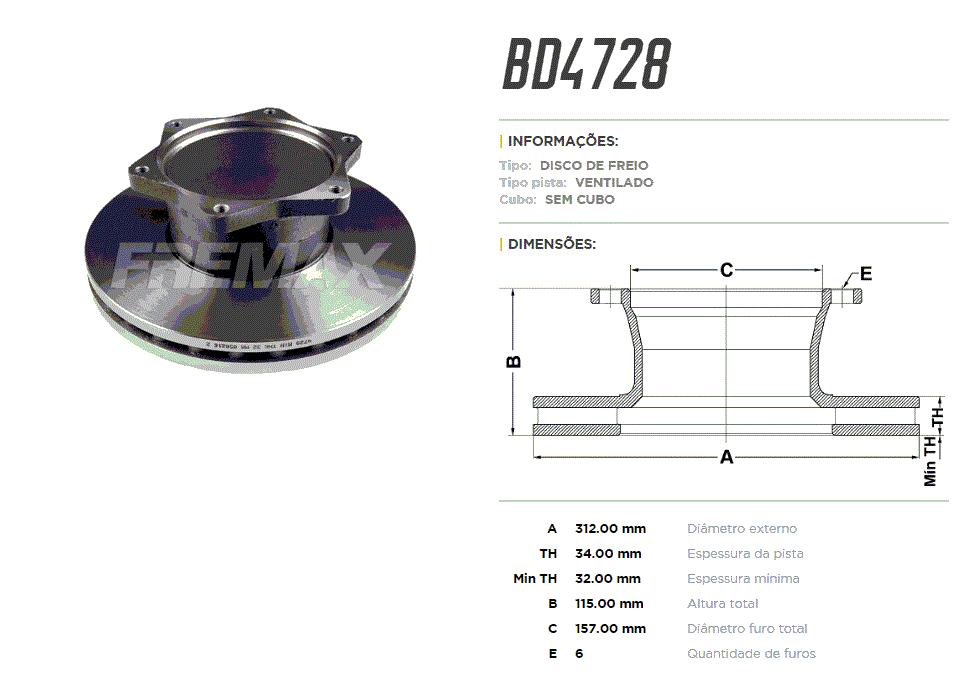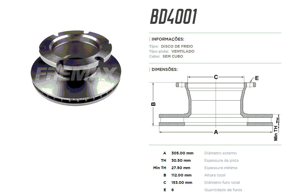 11909 - DISCO FREIO DIANT/TRAS FORD F4000 81/97 VENTILADO 6-FUROS