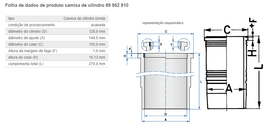 1195 - CAMISA MOTOR MB 457 1938/2638 SEM CANAL DE REFRIGERACAO