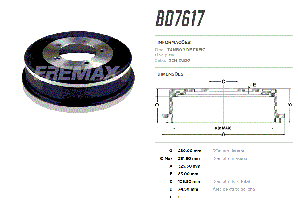 11921 - TAMBOR DIANT FORD F4000 75/81 4-FUR