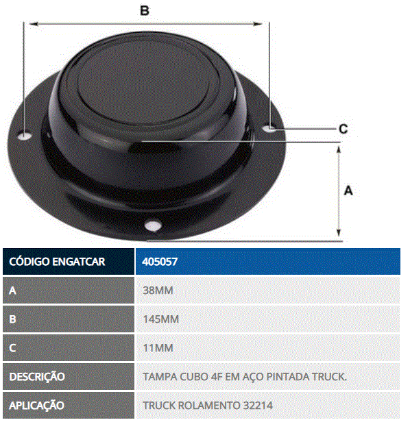 12067 - TAMPA CUBO 4-FURO TRUCK S/ LOGO 38X145X11MM
