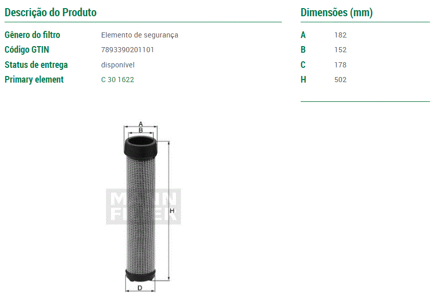 12279 - FILTRO AR SEGURANCA SCANIA 114/124 SERIE-4