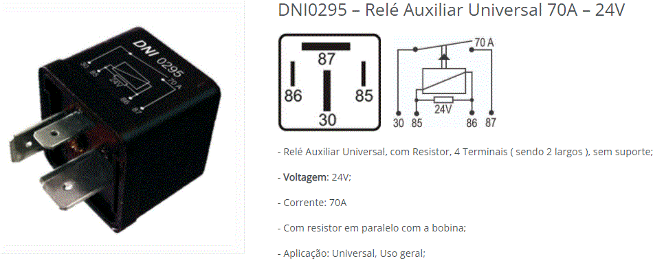 13244 - RELE AUXILIAR FAROL SCANIA/MB 24V 70-AMPERES 4-TERMINAL