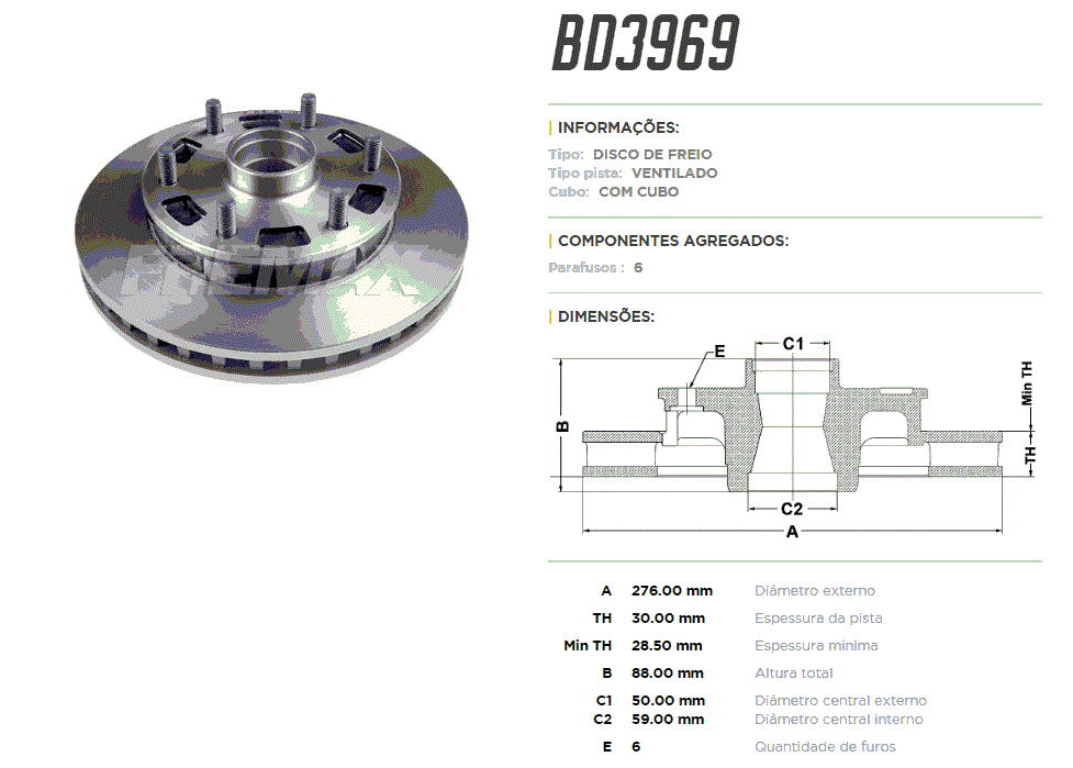 13512 - DISCO FREIO DIANT GM S10/BLAZER 93/02 ABS VENTILADO 6-FUROS