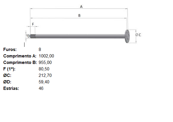1438 - SEMI EIXO FORD CARGO/IVECO/VOLVO/VW DIF MS160/165/168 LONGO