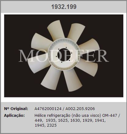 14545 - HELICE PLASTICO MB 1630/1935/1941 OM-449/447LA S/ POLIA VISCOSA 8-PAS