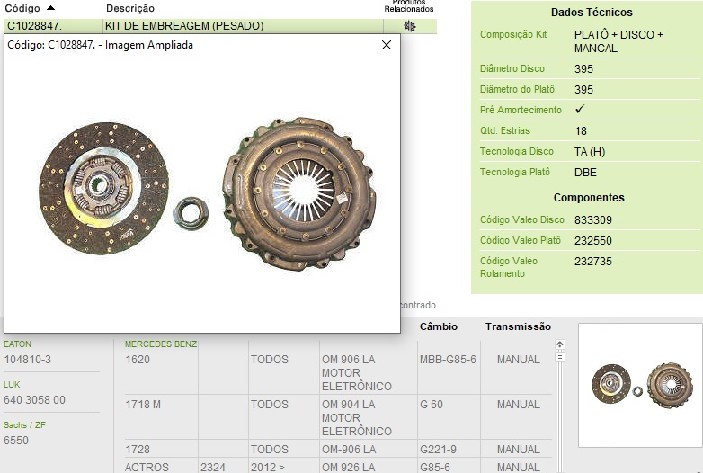 14775 - KITS EMBREAGEM MB OM-904/924/906/926 395MM 18-ESTRIAS MECANICO/ELETRONICO C/ PRE AMORT. C/ MANCAL