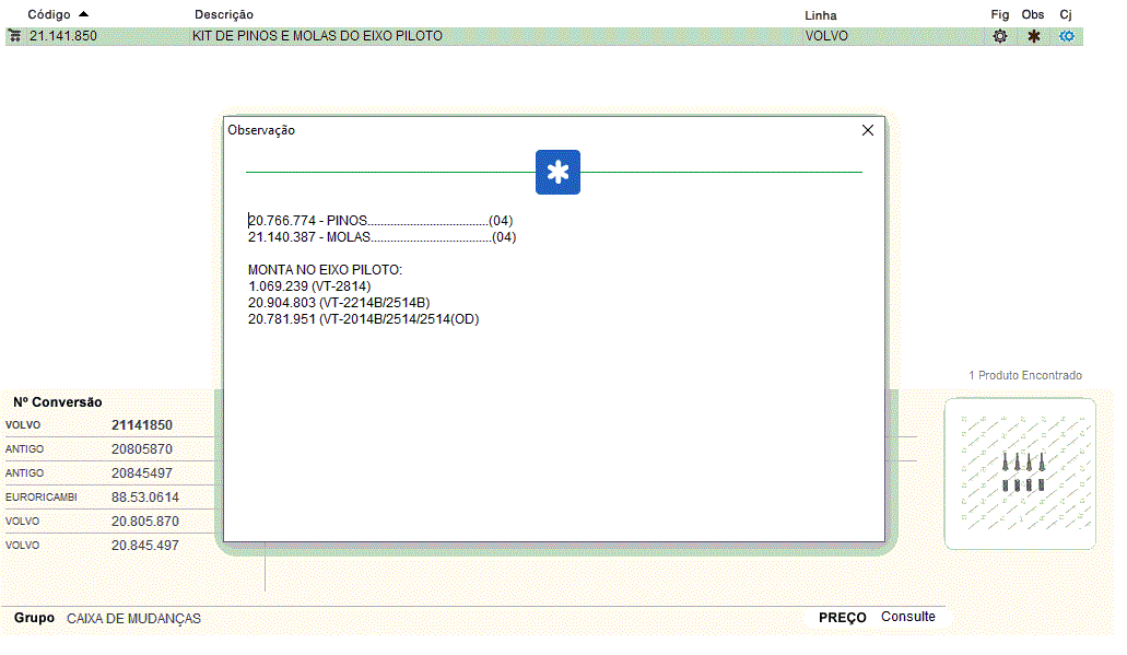 1449 - KITS PINO POSICIONADOR EIXO PILOTO CAMBIO VOLVO VT2014/VT2214/VT2514/VTO2514/VT2514OD
