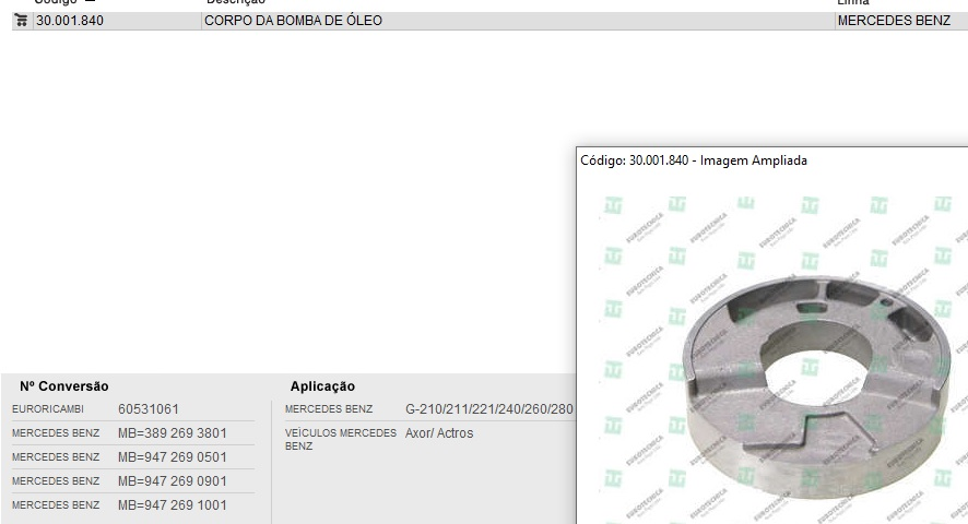1481 - CORPO BOMBA OLEO CAMBIO MB G 131/210/211/221/240/260/280