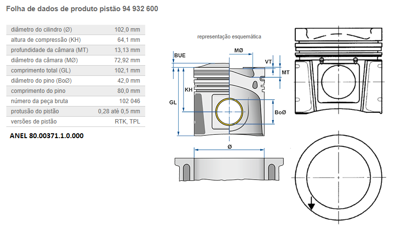 1484 - PISTAO C/ANEL MOTOR MB 904/906 LA ELETRONICO EURO III EURO IV PINO PISTAO 42MM