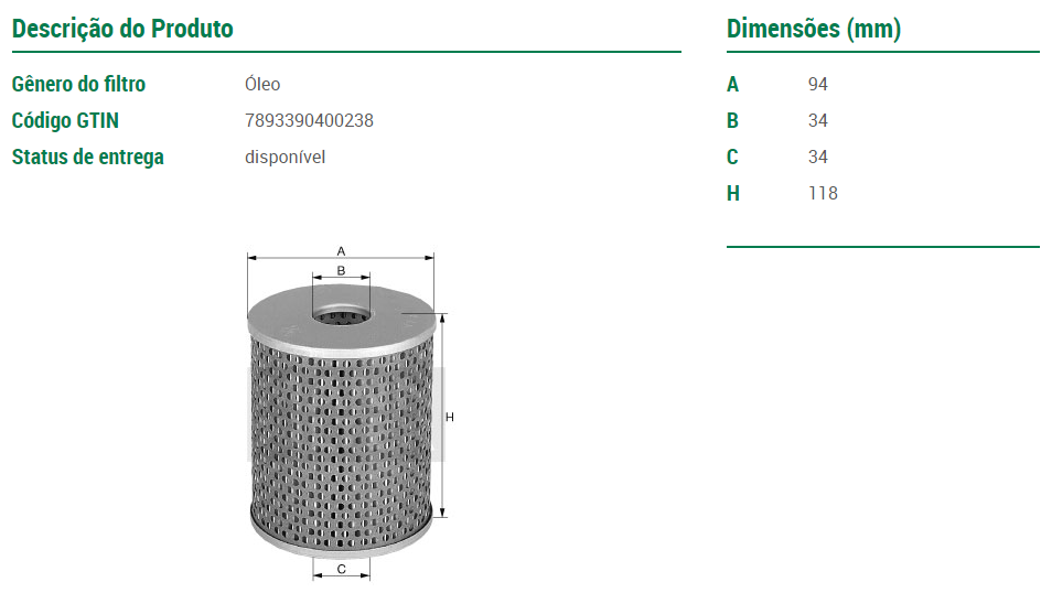 15050 - FILTRO LUBRIF GM D60/D70/D80/D90/ 6.357 PAPEL