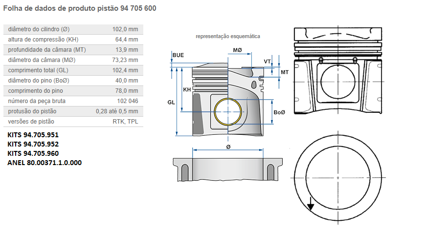 15271 - PISTAO C/ANEL MOTOR MB 904/906 LA ELETRONICO PINO PISTAO 40MM