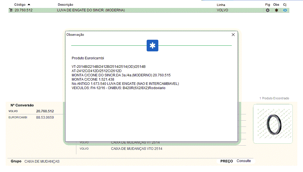 1496 - LUVA ENGATE CAMBIO VOLVO VT2014/VT2214/VT2514 MODERNO