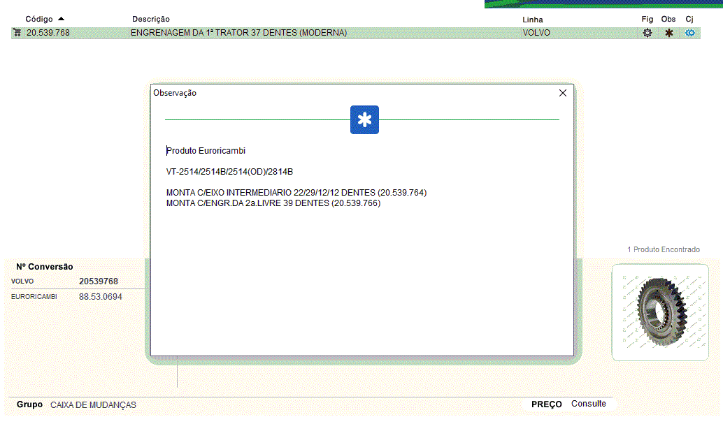 1497 - ENGRENAGEM CAMBIO VOLVO 1-SUP VT2514/VT2514OD/VT2514B/VTO2514B