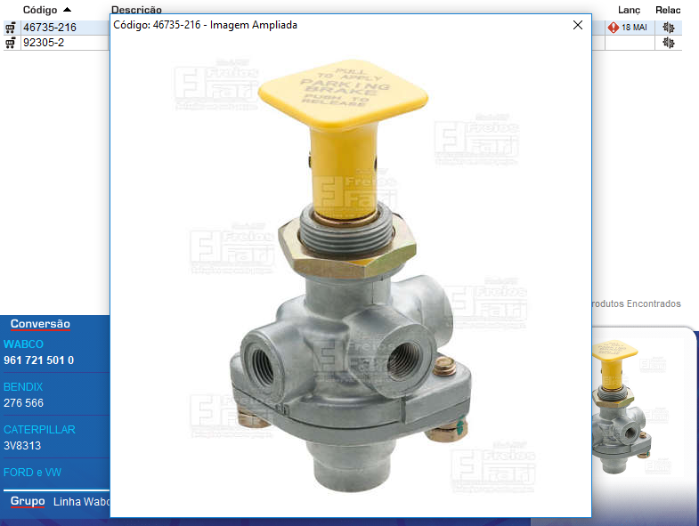 15970 - VALVULA FREIO MAO WABCO FORD CARGO/VW 1418/2422/3530