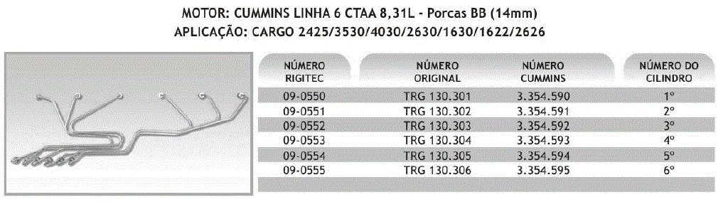 15980 - CANO INJ CUMMINS 6-CTAA VW/FORD CARGO MOTOR C 250/300 CV 3-CIL