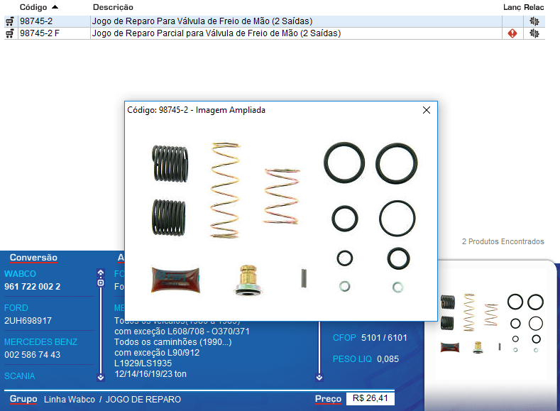 17692 - REPARO VALV FREIO MAO WABCO 2-SAIDA MB/VOLVO/CARGO/SCANIA/VW
