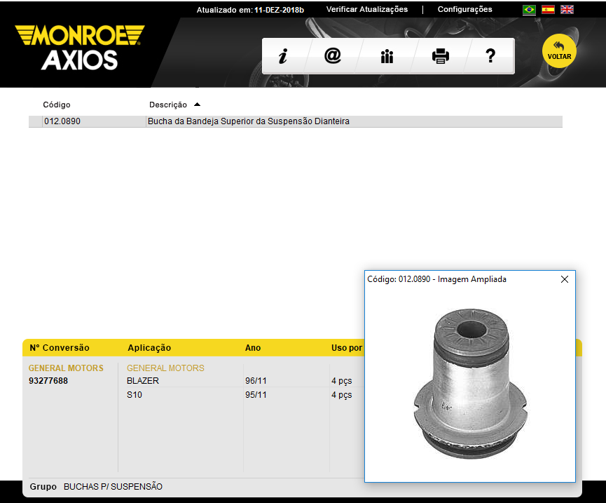 17748 - BUCHA BANDEJA SUP GM DIANT S10 BLAZER 95/...