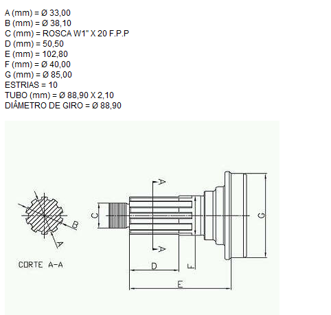 18706 - PONTEIRA CARDAN C/ROSCA FORD/MB 809/812/912/F7000/F11000/F21000