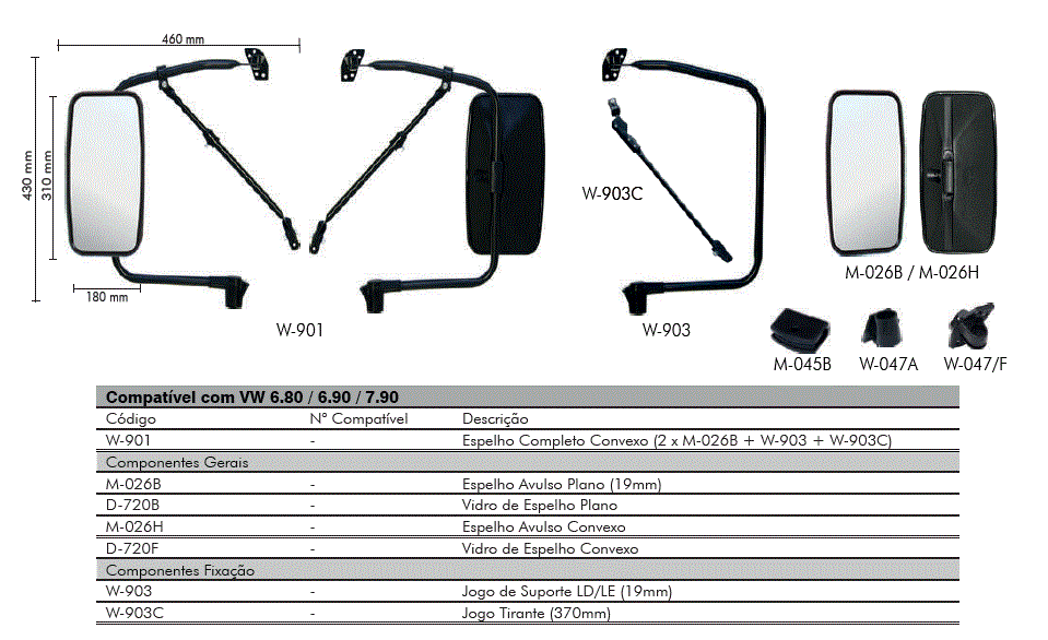 18724 - JG ESPELHO RETROVISOR COMPLETO VW 6.90 7.90 19MM