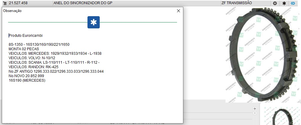 18843 - ANEL SINCRONIZADO CAMBIO MB/VOLVO/IVECO PESADA 16S-130/16S-160/16S-165