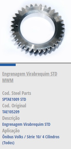19121 - ENGRENAGEM VIRABREQUIM MWM X-10 4.10 6.10 0.00 STD